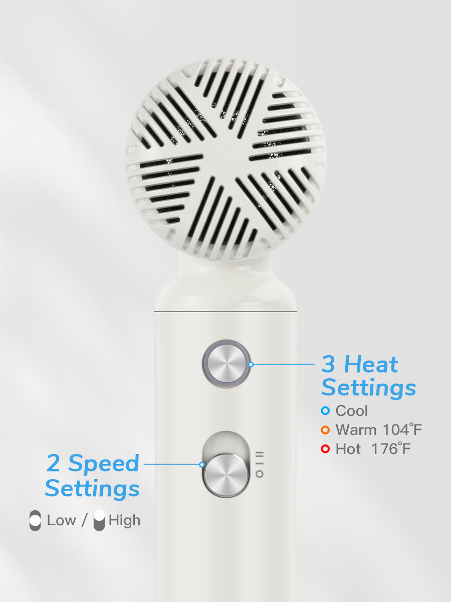 Features 2 airflow speeds and 3 temperature options to suit all hair types and styling needs.