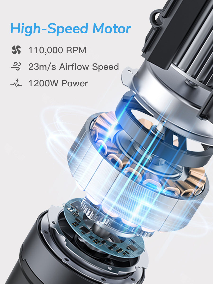 The 1200W Webeauty hair dryer, with a 110,000 RPM brushless motor and 23m/s wind speed, dries your hair twice as fast as traditional dryers—in just 2-8 minutes.